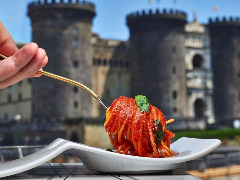 Enjoy your spaghetti to-go as you stroll through the streets of Naples and rediscover the flavor of the Italian dish par excellence: spaghetti with pummarola!
